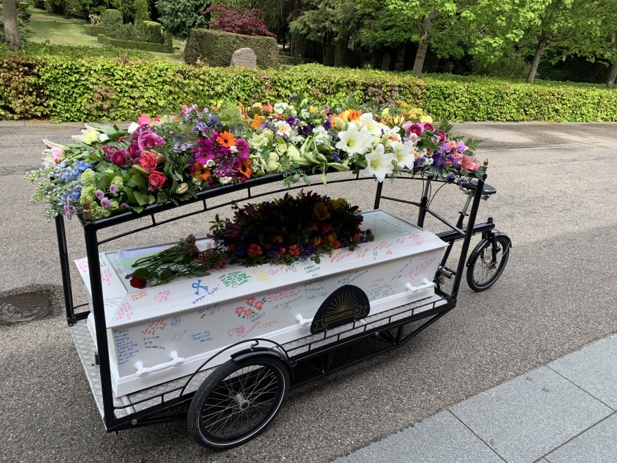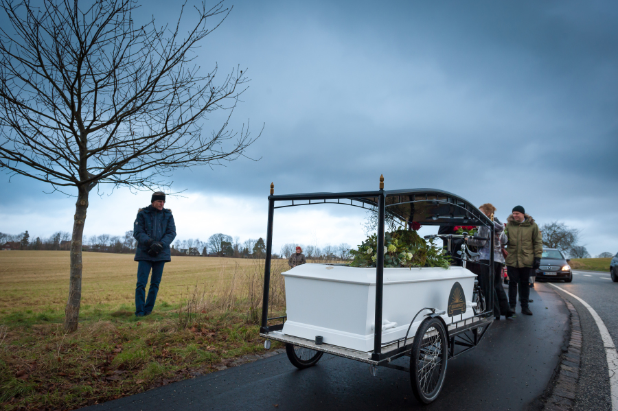 Den kan også bruges som højtidskørslen fra kirken eller kapellet, hvor følget kan følge med til graven eller krematoriet - gerne med stop undervejs, musik og masser af blomster på cyklens tag.