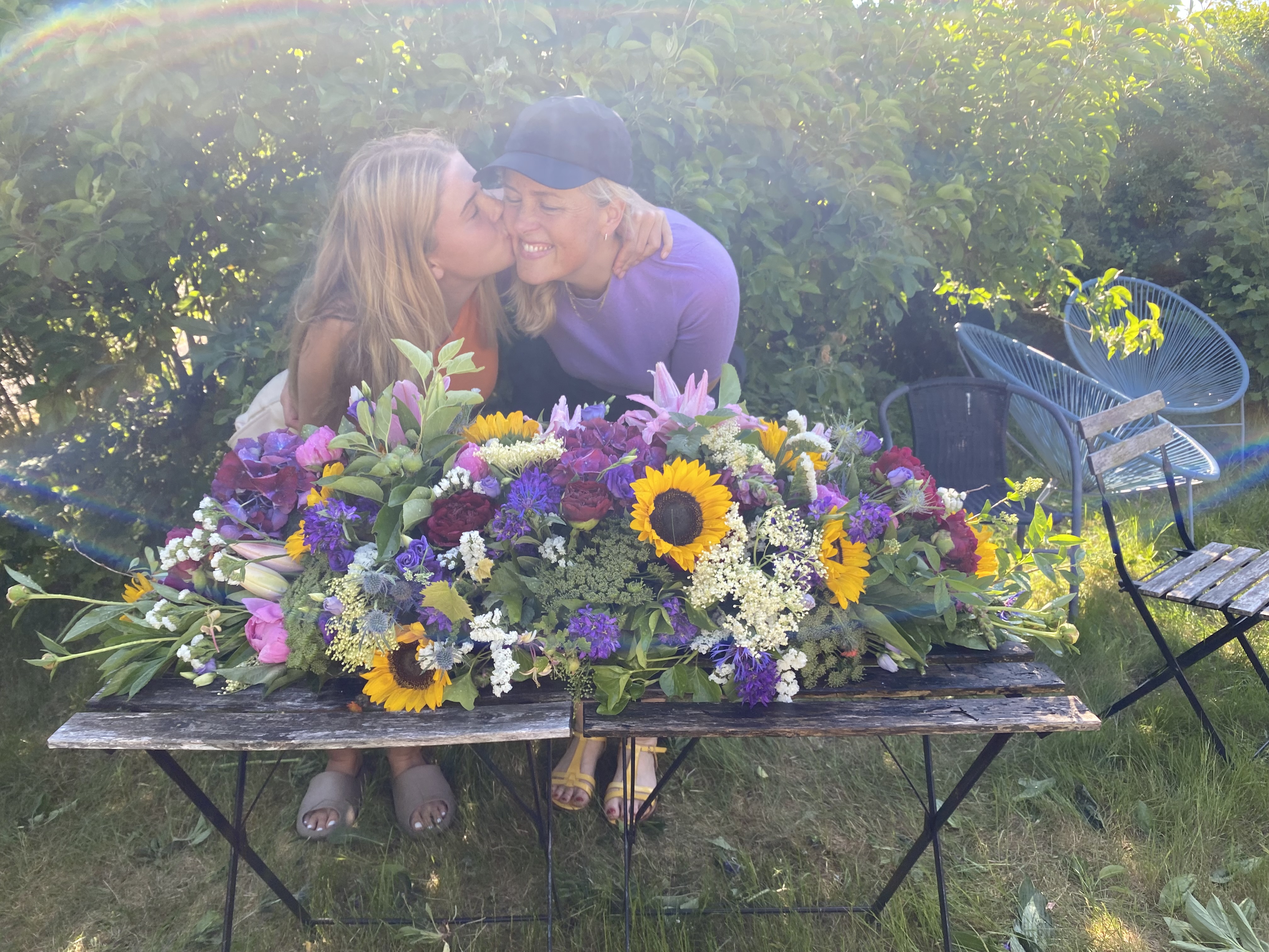 Det plejer at være vildt hyggeligt, når vi mødes dagen inden bisættelsen og laver blomsterne sammen.